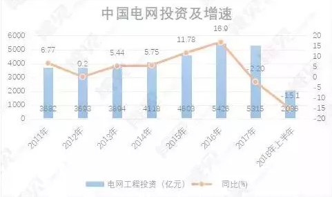 “十二五”以來(lái),我國(guó)電網(wǎng)投資總體都保持增長(zhǎng),2017年電網(wǎng)投資開始出現(xiàn)首次下降。國(guó)家能源局的最新數(shù)據(jù)顯示,2018年上半年,我國(guó)電網(wǎng)工程投資金額為2036億元,同比大幅下滑15.1%。