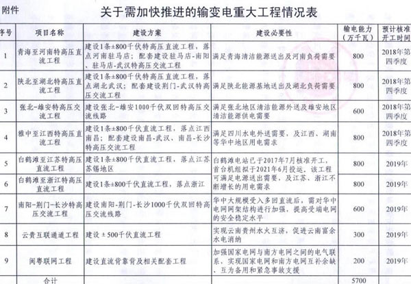 分析9項(xiàng)重點(diǎn)工程發(fā)現(xiàn),一是核準(zhǔn)開工時(shí)間集中在2018年第四季度和2019年,較為緊迫。二是主要項(xiàng)目類型都為直流、交流特高壓工程,旨在將西北、西南清潔能源送往江蘇、浙江等電力負(fù)荷中心。