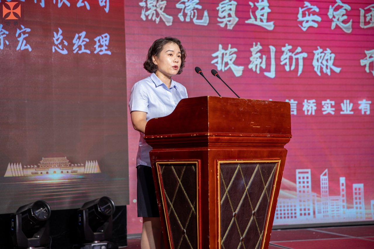 員工代表張釗講話(huà),他代表了中青一代的信橋人,感慨了信橋二十幾年的發(fā)展,感謝信橋給予他的財(cái)富和能力。