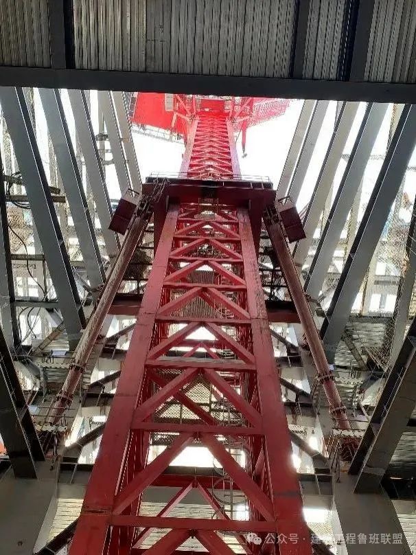 3、發(fā)明了“一種六支座下承支撐式塔吊支撐體系”“附著面收縮情況下動(dòng)臂塔吊爬升輔助結(jié)構(gòu)”和“適應(yīng)于塔吊附著面收縮狀態(tài)的塔吊支撐架”,形成了巨柱外掛式大型塔吊自爬支撐設(shè)計(jì)與應(yīng)用技術(shù)。